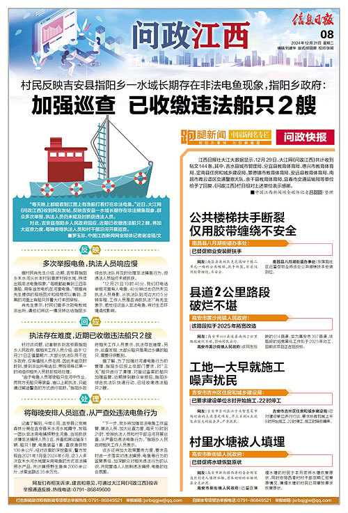 江西日报社大江大数据显示,12月29日,大江网《问政江西》共计收到帖文144条,其中,吉水县城市管理局、分宜县教育体育局、德兴市教育体育局、定南县住房和城乡建设局、景德镇市教育体育局、安远县教育体育局、南昌市青云谱区交通警察大队、余干县教育体育局、宜春市交通运输局等单位给予了回复,《问政江西》栏目组对上述单位表示感谢。