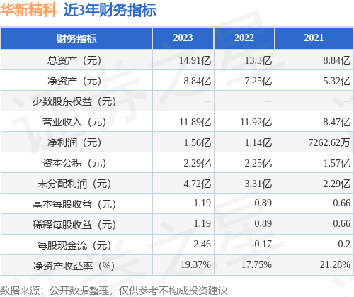 从目前公布的财报来看,华新精科2023年总资产为14.91亿元,净资产为8.84亿元;近3年净利润分别为1.56亿元(2023年),1.14亿元(2022年),7262.62万元(2021年)。详情见下表: