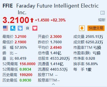 法拉第未来(FFIE.US)暴涨超82%后触发熔断,报3.21美元。消息面上,法拉第未来宣布,将于2025年1月中旬向洛杉矶华人社区领袖及知名企业家Luke Hans先生正式交付一辆全新的FF 91 2.0 Futurist Alliance电动车。综合此前消息,这应该是法拉第未来交付的第15辆FF 91。(格隆汇)