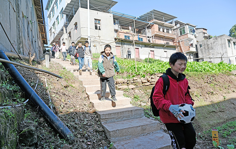 12月27日清晨,位于四川省南充市营山县的福源小学旁,孩子们走在新建成的水泥路上,一路欢声笑语。