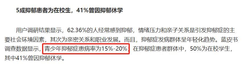 “15%~20%”是我国儿童青少年抑郁症状的流行率,或者说是抑郁高风险人群的比例。