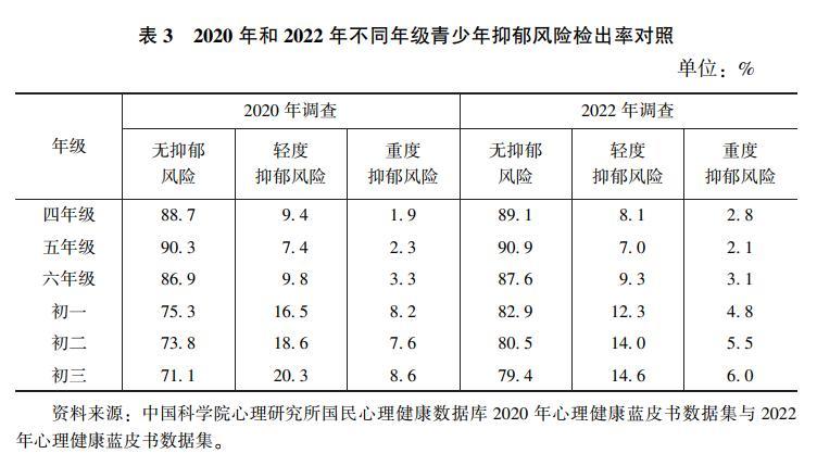 2020年通过调查得出的抑郁风险则比2022年的高[5]