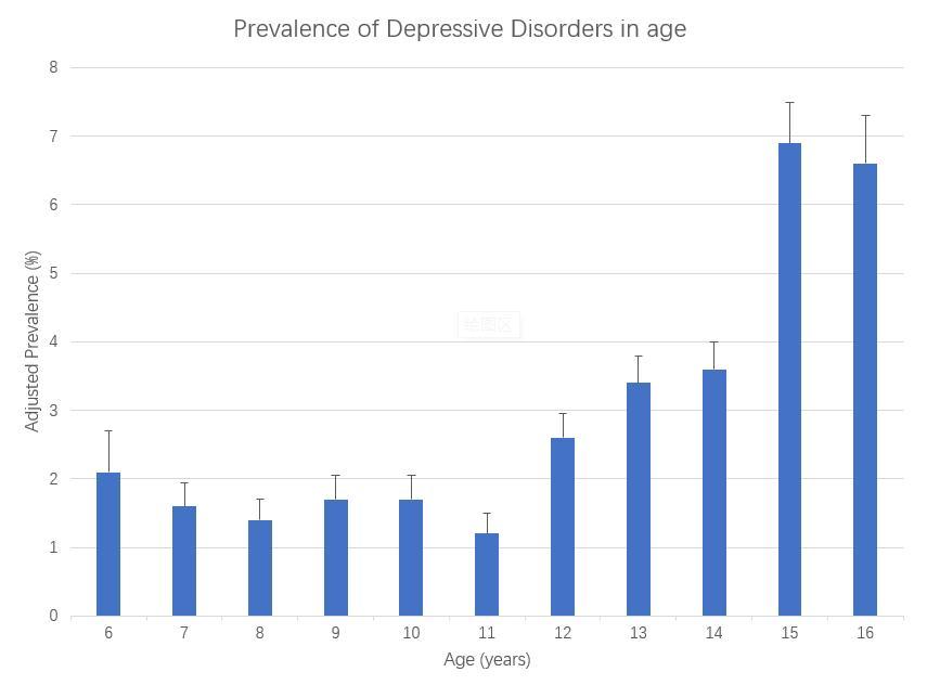 我国儿童青少年重度抑郁障碍的患病率为2%,年龄较大群体的抑郁患病率相对偏高,15~16岁群体的抑郁症患病率为6%~7%。