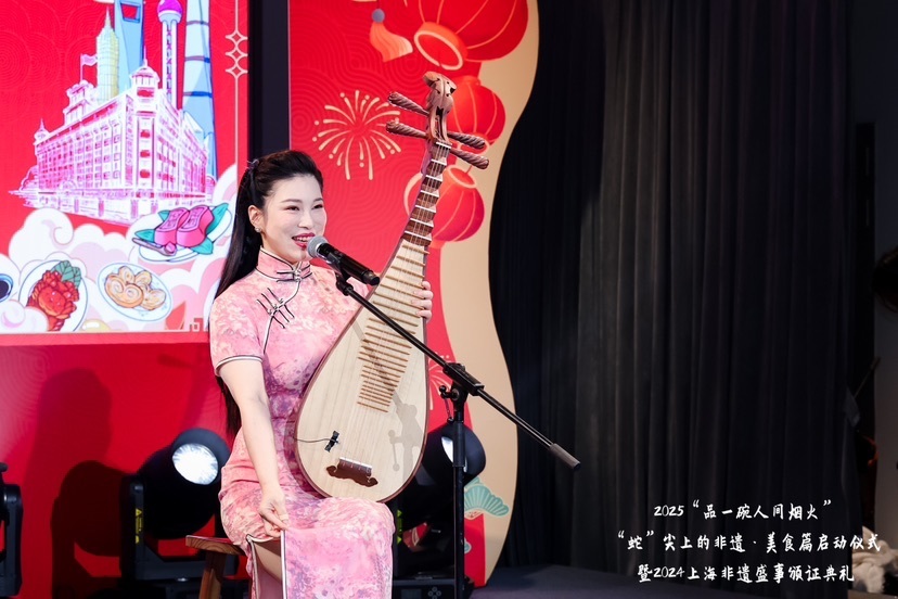 12月31日下午,由上海市文化和旅游局、虹口区人民政府指导,虹口区文化和旅游局、上海市糖业烟酒(集团)有限公司共同主办,光明商业供应链、上海糖烟酒茶商业行业协会、今潮8弄共同承办的“‘品一碗人间烟火’——2025‘蛇’尖上的非遗·美食篇启动仪式暨2024上海非遗盛事颁证典礼”在虹口区今潮8弄开幕。