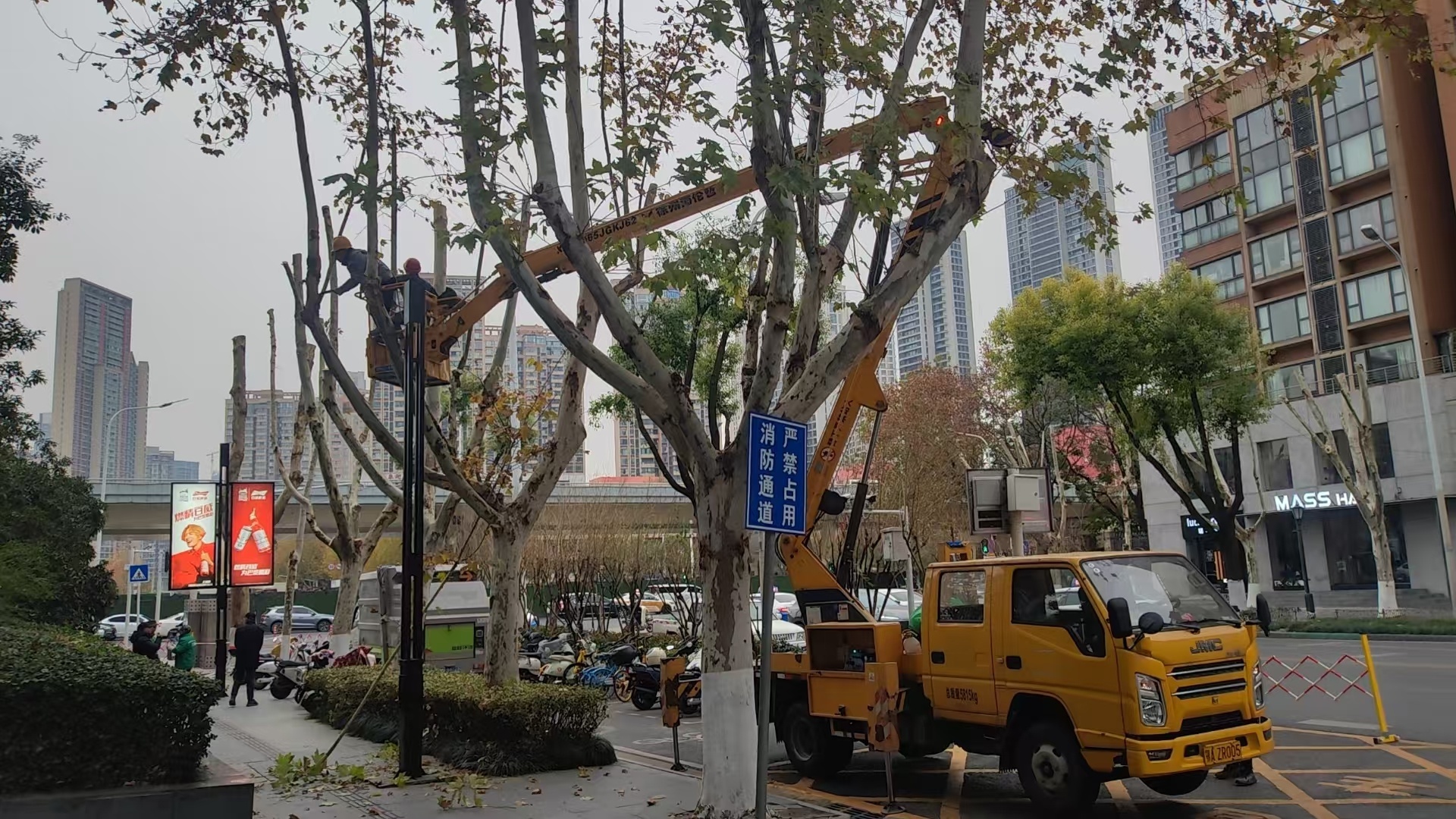 该负责人向九派新闻介绍,法国梧桐学名为悬铃木,是一类速生树种,以其宽大的叶片和茂密的枝叶闻名。定期修剪不仅有助于调控树木生长态势,提高树体通透性,还能预防病虫害。