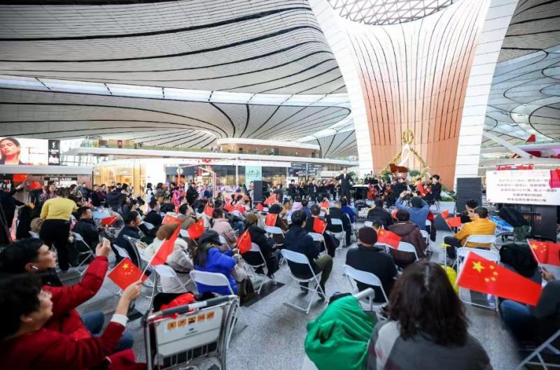 2024年以来,大兴机场携手首都图书馆,分别邀请中央歌剧院、中国广播民族乐团、北京歌剧舞剧院等专业团队带来交响乐、民族乐等多种风格演出活动,演奏中外知名曲目100余首。大兴机场创新发挥航站楼空间优势,将机场这一“城市会客厅”与“音乐厅”融合起来,通过表演多民族经典艺术,凝聚起这座国际航空枢纽中各国旅客的情感共鸣,为每一段旅途增添温度。