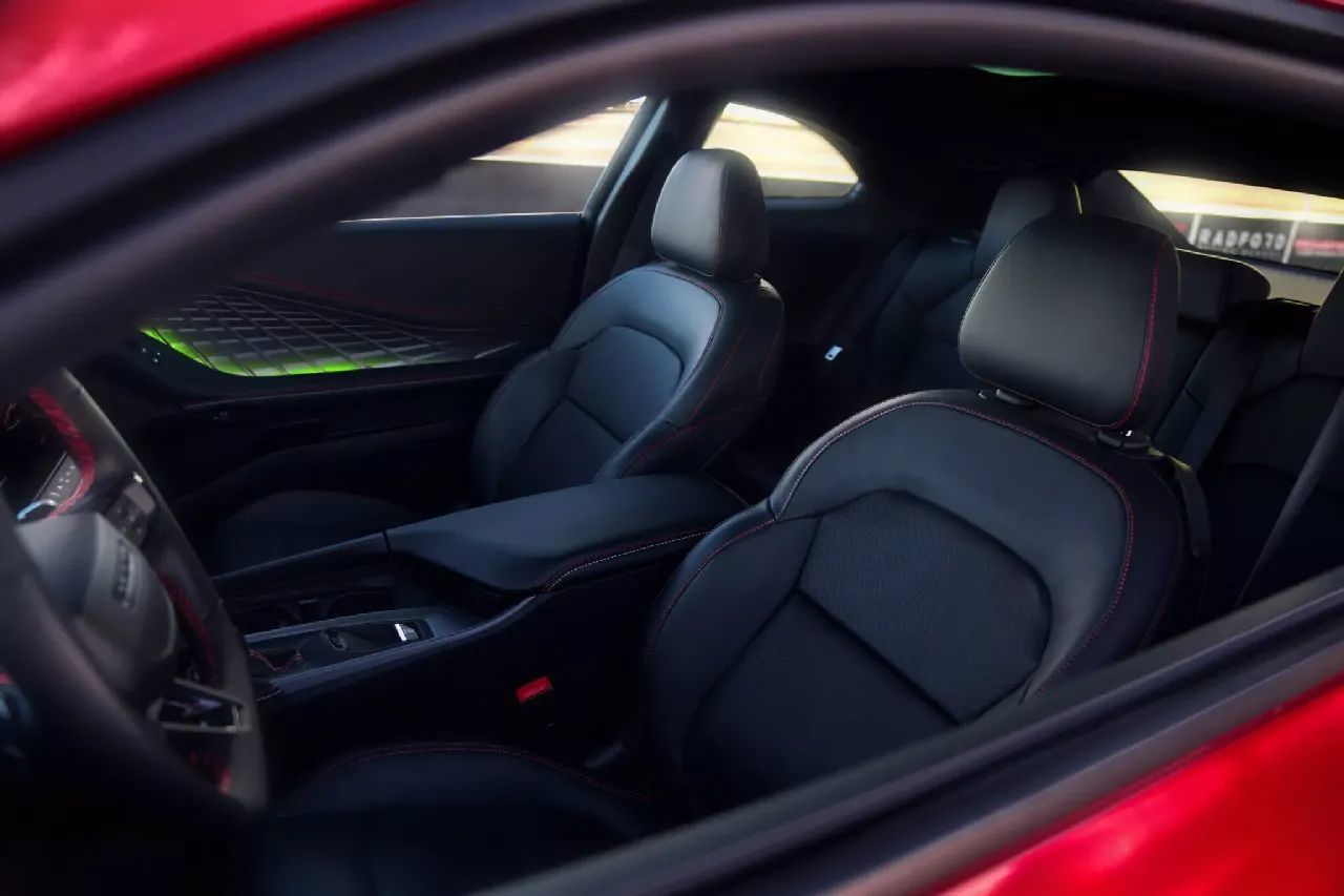 Charger Daytona的内饰融合了传统与现代的设计风格,R/T车型配备10.3英寸液晶屏,而Scat Pack车型则升级为16英寸。车内保留了部分实体按键,搭配手枪式换挡杆,体现了浓郁的美式风格。值得一提的是,道奇为Charger Daytona配备了Fratzonic Chambered Exhaust调音系统。