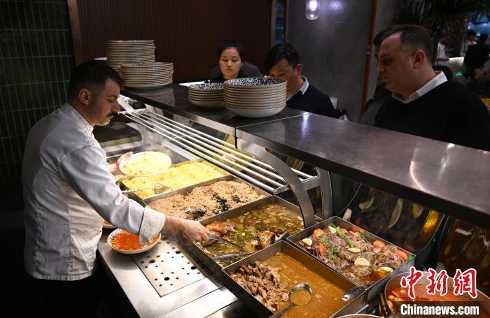 浙江义乌素称“世界超市”,是全球小商品集散地,多年来以开放和国际化吸引着世界各地的客商纷至沓来。据了解,每年来义乌的外商多达60万人次左右,常住外国人已超1.6万。如今承载乡愁和记忆的异域美食也在义乌“遍地开花”,外国风味餐厅在义乌稠州北路、宾王商贸区等地“连片成势”。“世界超市”里诞生“国际美食城”。图为12月28日,义乌搏斯餐厅美食吸引食客,该餐厅在义乌已有17年,其主打的土耳其菜一度吸引众多外国人,如今越来越多的中国食客也纷纷“打卡”。中新社记者 王刚 摄