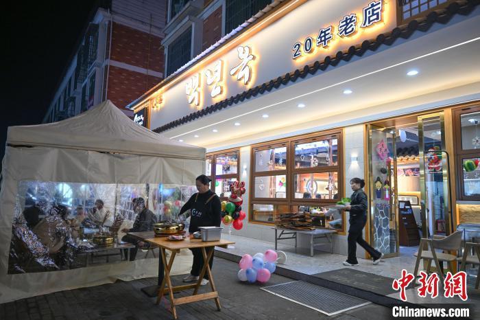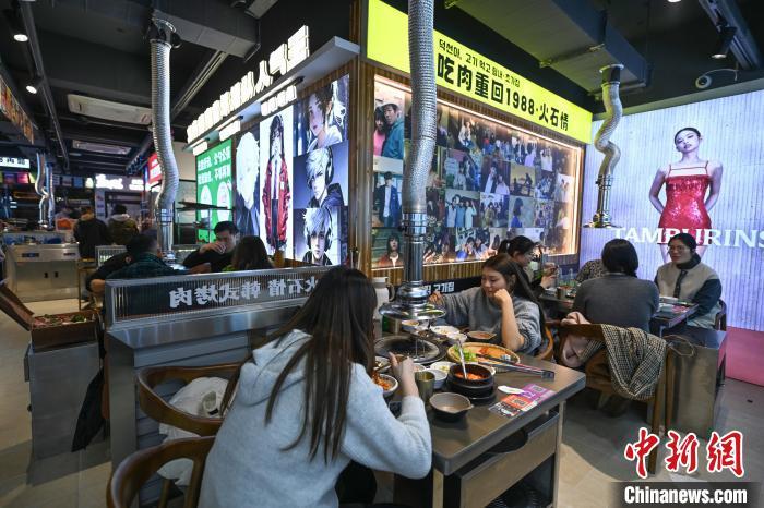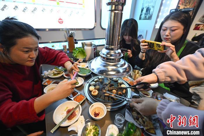浙江义乌素称“世界超市”,是全球小商品集散地,多年来以开放和国际化吸引着世界各地的客商纷至沓来。据了解,每年来义乌的外商多达60万人次左右,常住外国人已超1.6万。如今承载乡愁和记忆的异域美食也在义乌“遍地开花”,外国风味餐厅在义乌稠州北路、宾王商贸区等地“连片成势”。“世界超市”里诞生“国际美食城”。图为12月17日,义乌“韩国风情街”内,由东北人李红梅开设的韩国风味餐厅吸引不少食客。中新社记者 王刚 摄