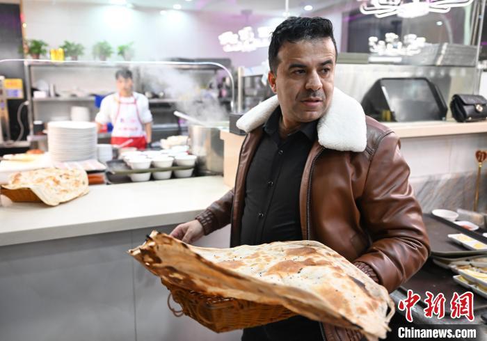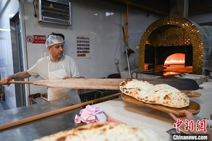 浙江义乌素称“世界超市”,是全球小商品集散地,多年来以开放和国际化吸引着世界各地的客商纷至沓来。据了解,每年来义乌的外商多达60万人次左右,常住外国人已超1.6万。如今承载乡愁和记忆的异域美食也在义乌“遍地开花”,外国风味餐厅在义乌稠州北路、宾王商贸区等地“连片成势”。“世界超市”里诞生“国际美食城”。图为12月28日,义乌搏斯餐厅工作人员在烤制面饼。中新社记者 王刚 摄