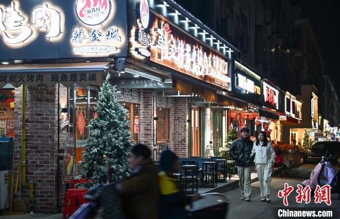 浙江义乌素称“世界超市”,是全球小商品集散地,多年来以开放和国际化吸引着世界各地的客商纷至沓来。据了解,每年来义乌的外商多达60万人次左右,常住外国人已超1.6万。如今承载乡愁和记忆的异域美食也在义乌“遍地开花”,外国风味餐厅在义乌稠州北路、宾王商贸区等地“连片成势”。“世界超市”里诞生“国际美食城”。图为12月17日,行人穿梭义乌“韩国风情街”,该街区目前已集聚数十家韩国风味的餐厅。中新社记者 王刚 摄