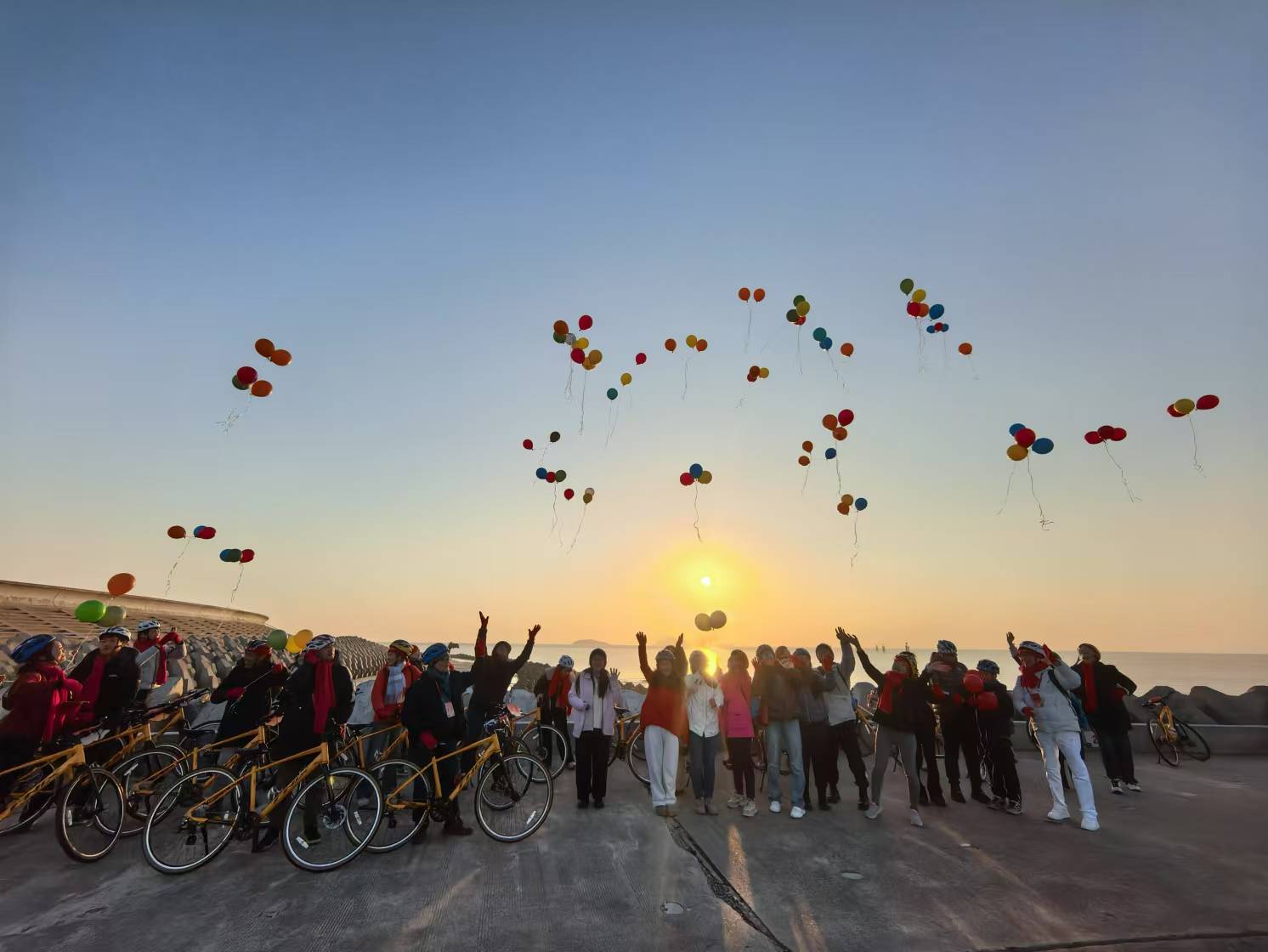 除了观赏日出,现场还举办了丰富多彩的庆祝活动,游客们可以填写许愿卡片,放飞心愿气球,参加金山元旦迎新跑活动,奔跑在城市沙滩5公里的海岸线上,共同传递着新年美好的愿景。