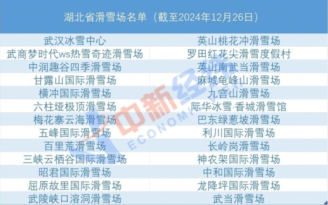 另据湖北省文化和旅游厅2024年12月26日发布的消息,目前湖北省26座滑雪场已全部开板。
