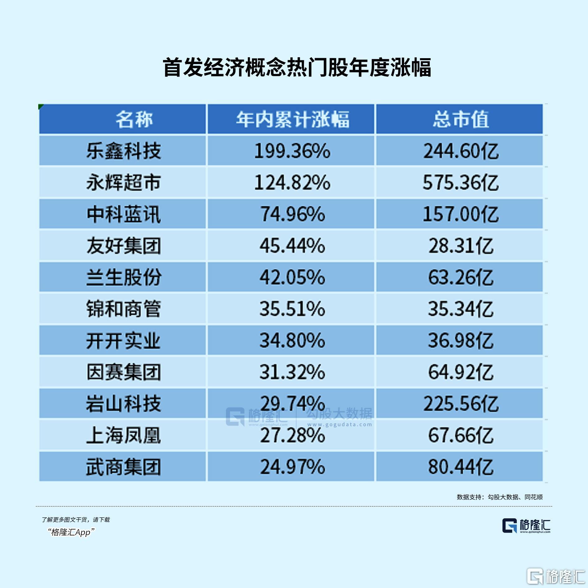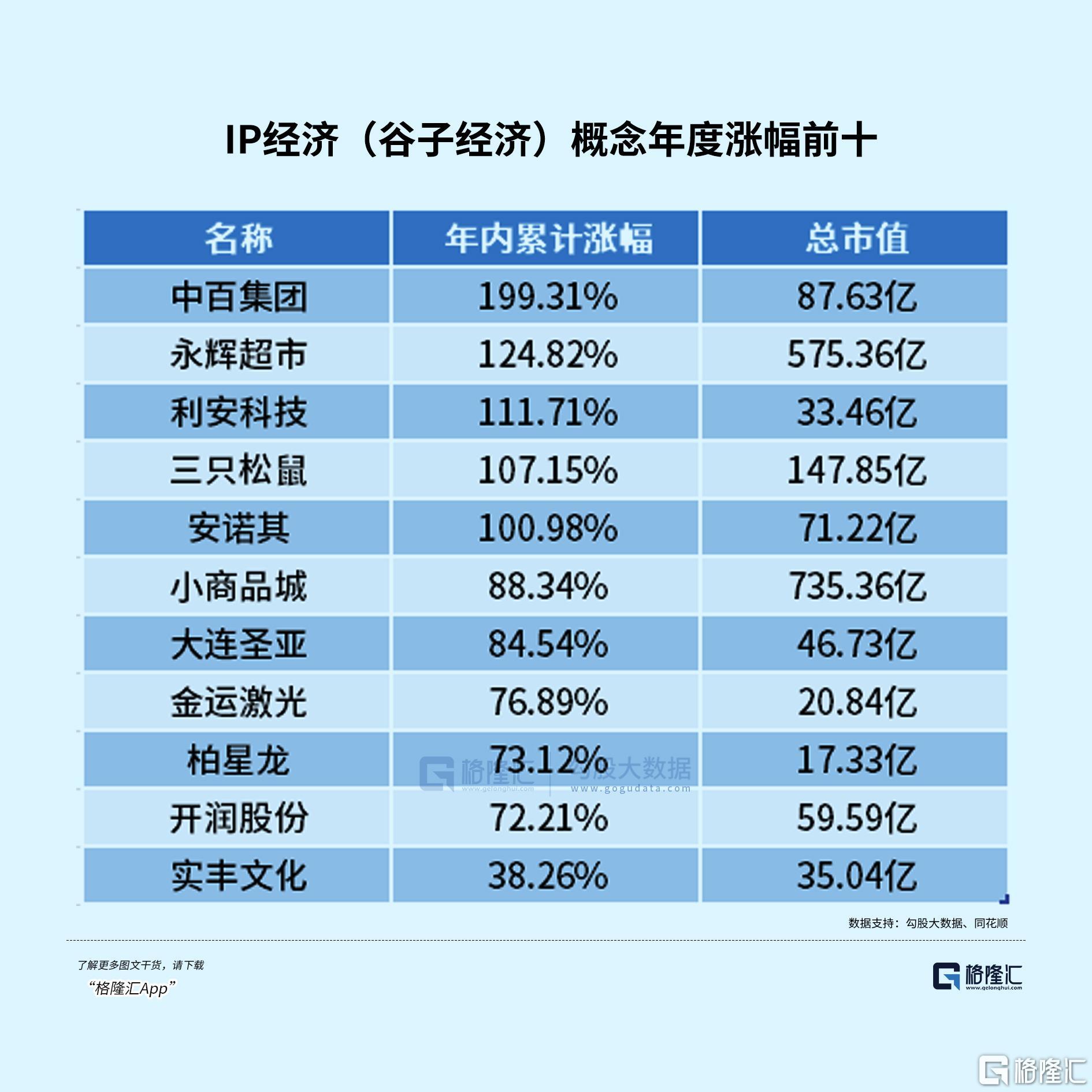 从全年表现来看,中百集团年度涨幅接近200%,永辉超市、利安科技、三只松鼠、安诺其年涨幅均超100%。