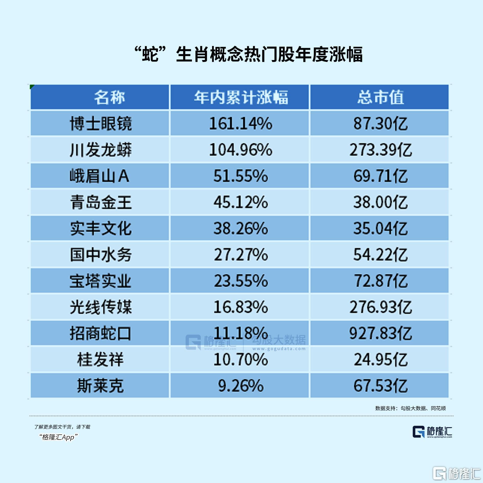 比如,斯莱克和斯迪克,这两家公司因其英文名称以“S”开头,与“Snake”(蛇)的发音相近而被纳入“蛇”概念范畴;漳州发展所在的城市漳州被称为“中国蛇城”,故而也成为了股民眼中的“蛇”概念股。