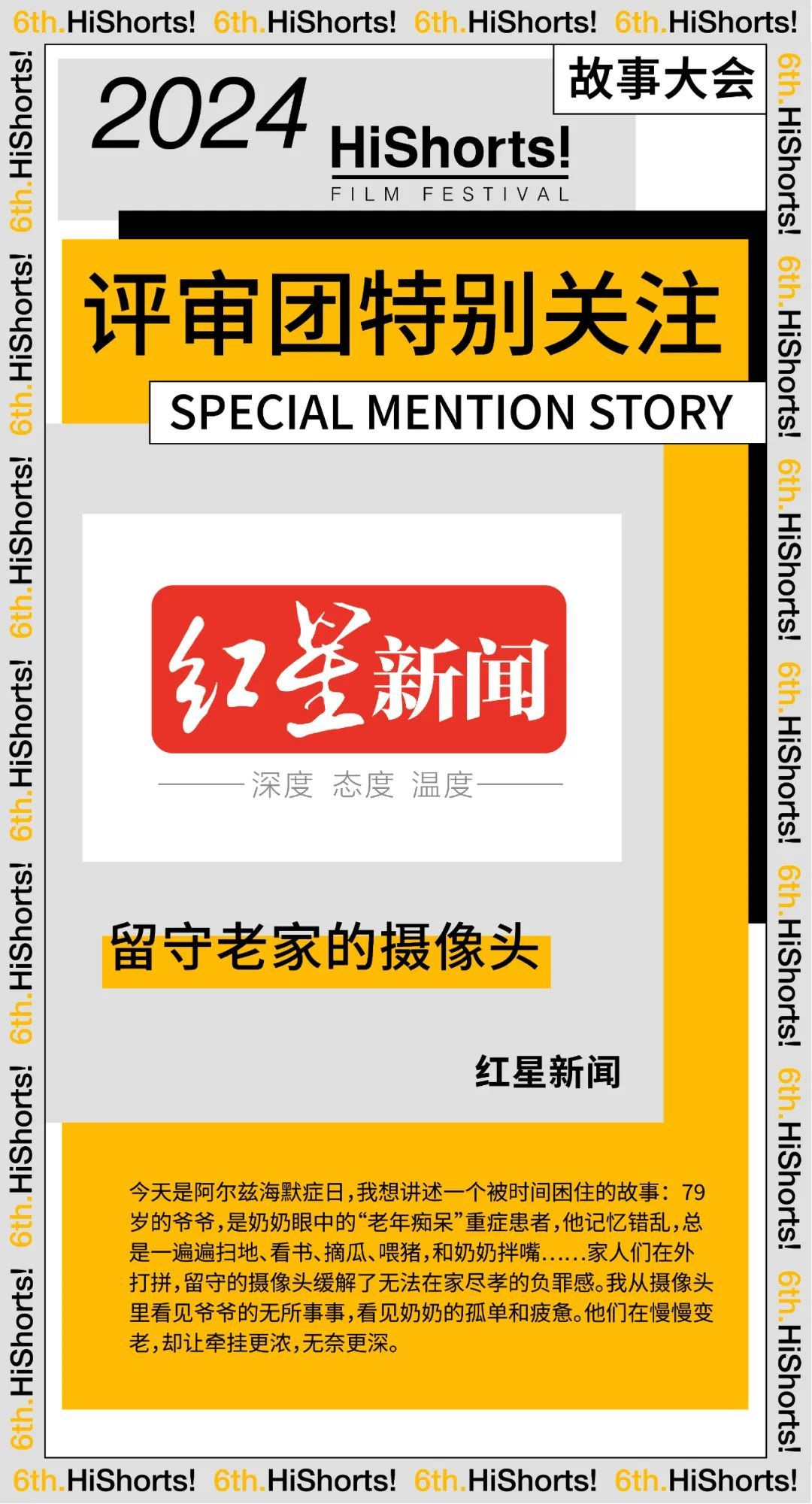 来自方红星新闻的作品《留守来家的摄像头》获得评审团特别关注奖。一个小小的监控摄像头,串联起了留守老人和进城务工的年轻人之间的情感羁绊,是一部立足于现实,不可多得的作品。