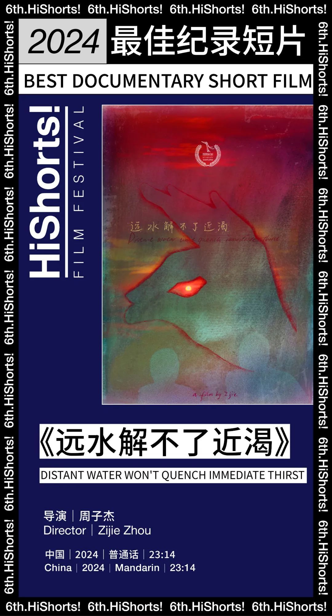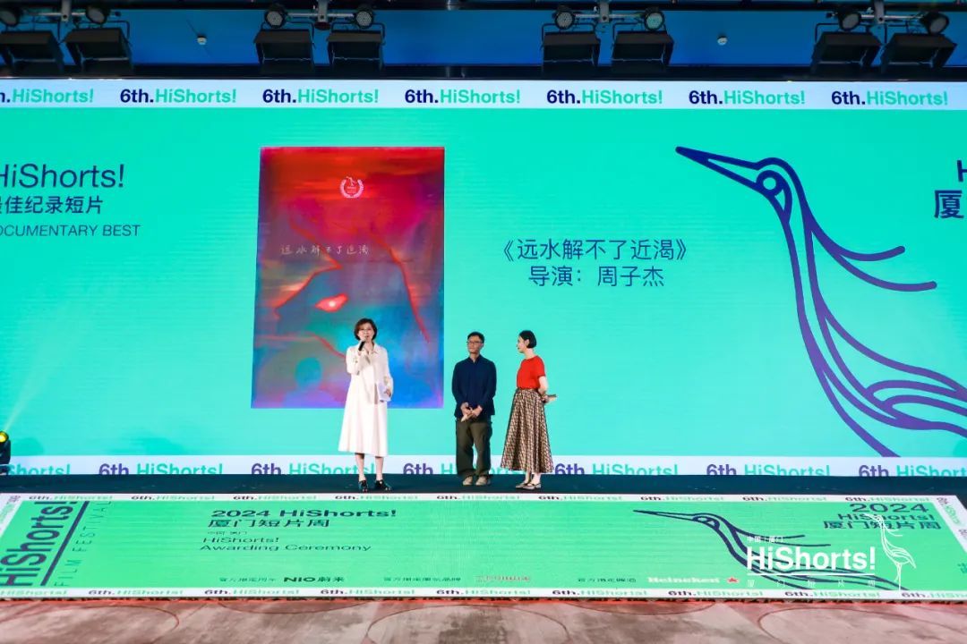 2024最佳纪录短片颁给了周子杰导演的《远水解不了近渴》,由李逸峰老师颁奖。通俗有趣的片名成功地吸引了大家的注意,整个故事幽默风趣。