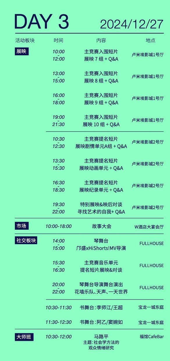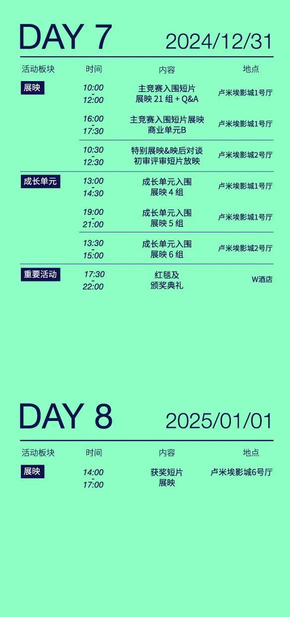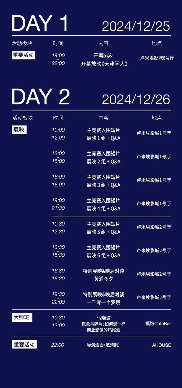 ↓请查收2024HiShorts! 厦门短片周活动日程图↓