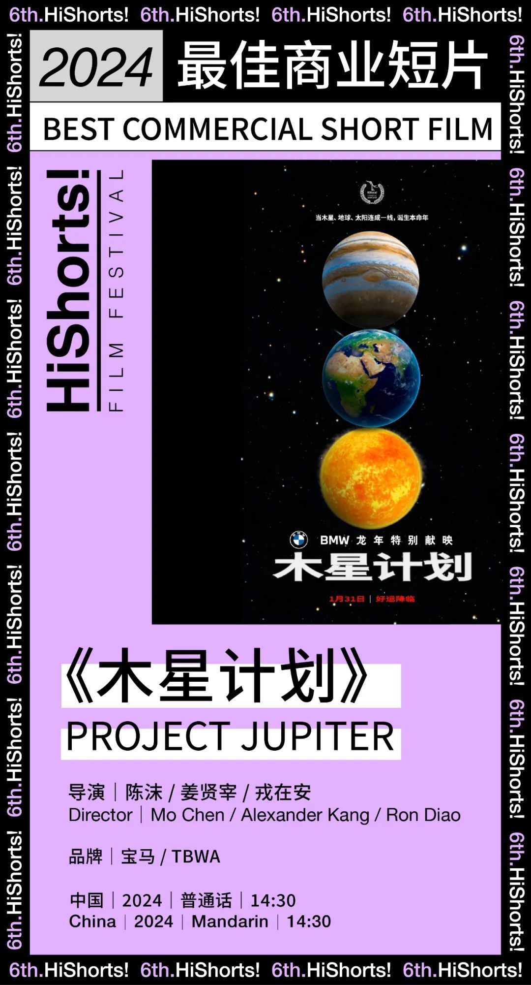2024最佳商业短片由《木星计划》摘得,由神思远老师颁奖。《木星计划》由陈沫,姜贤宰,戎在安导演团队为宝马和TBWA品牌创作,是想象力和逻辑性的结合体,体现了导演团队深入人心的创新观念。其品牌光环和精良制作更是大大提升了作品的质量。