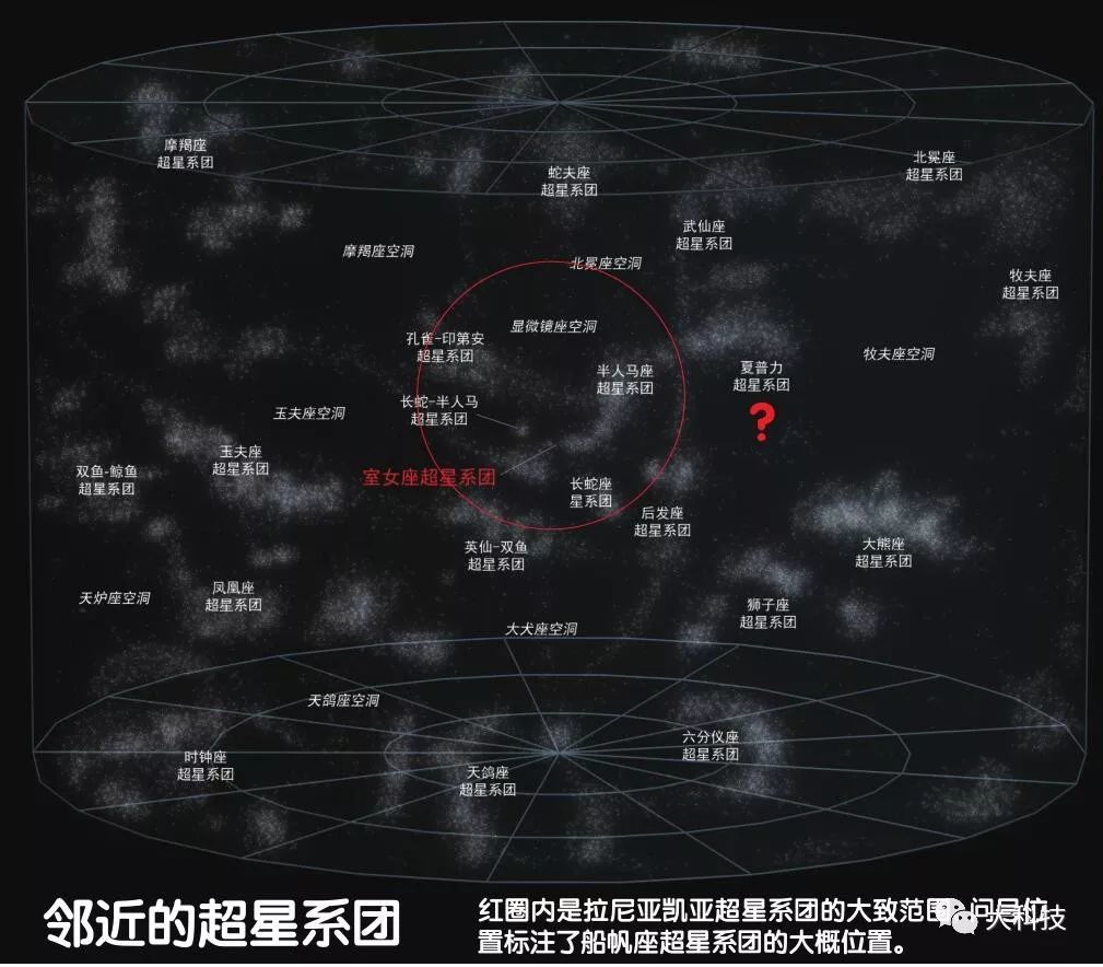 我们现在就在拉尼亚凯亚超星系团这一级别介绍一下别的超星系团。