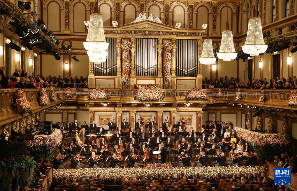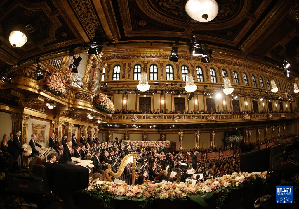 1月1日,维也纳爱乐乐团在奥地利维也纳金色大厅新年音乐会上演奏。