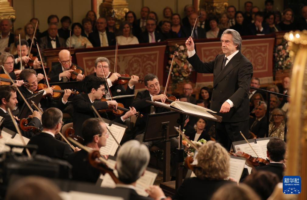 1月1日,在奥地利维也纳金色大厅,指挥家穆蒂指挥维也纳爱乐乐团演奏。