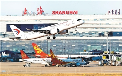1月1日,东航C919执飞的MU721航班从上海虹桥机场起飞