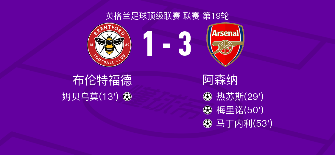 北京时间1月2日布伦特福德vs阿森纳,热苏斯得到全场最高的8.1分,若日尼奥得到全场最低的5.9分