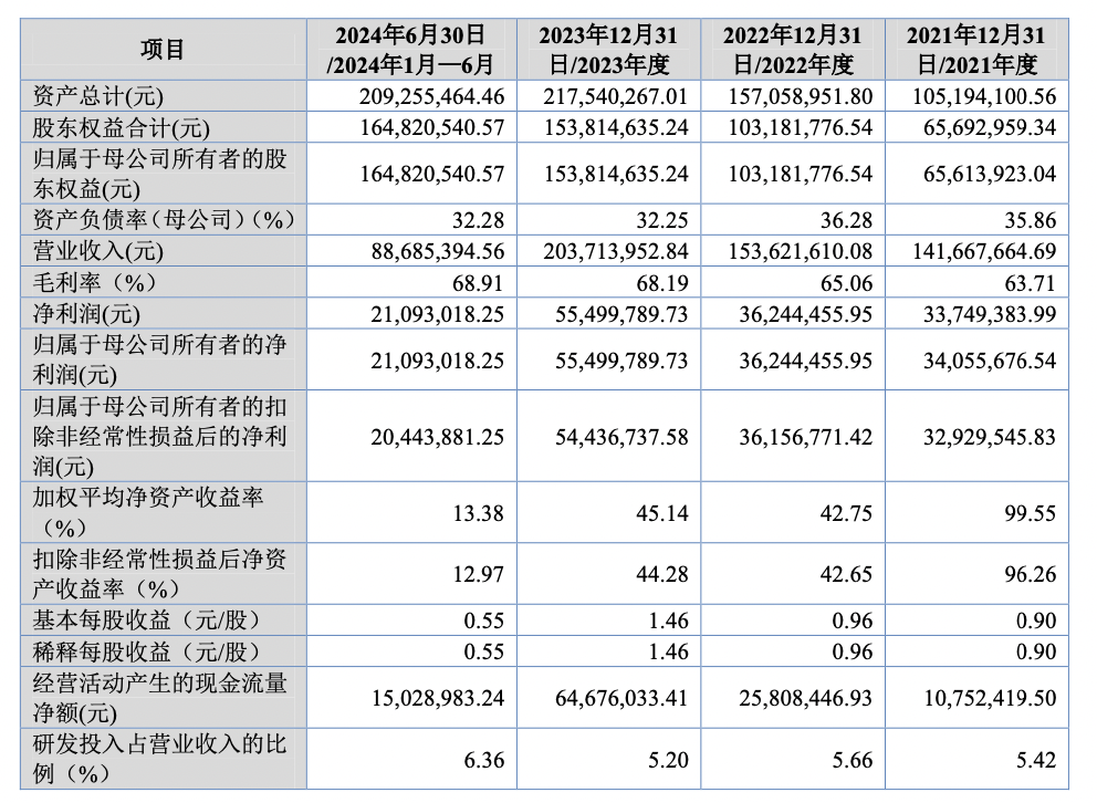 据招股书,2021年-2023年及2024上半年,海菲曼实现营收分别为1.42亿元、1.54亿元、2.04亿元、8868.54万元;归属于母公司所有者的净利润分别为3405.57万元、3624.44万元、5549.98万元、2109.3万元。
