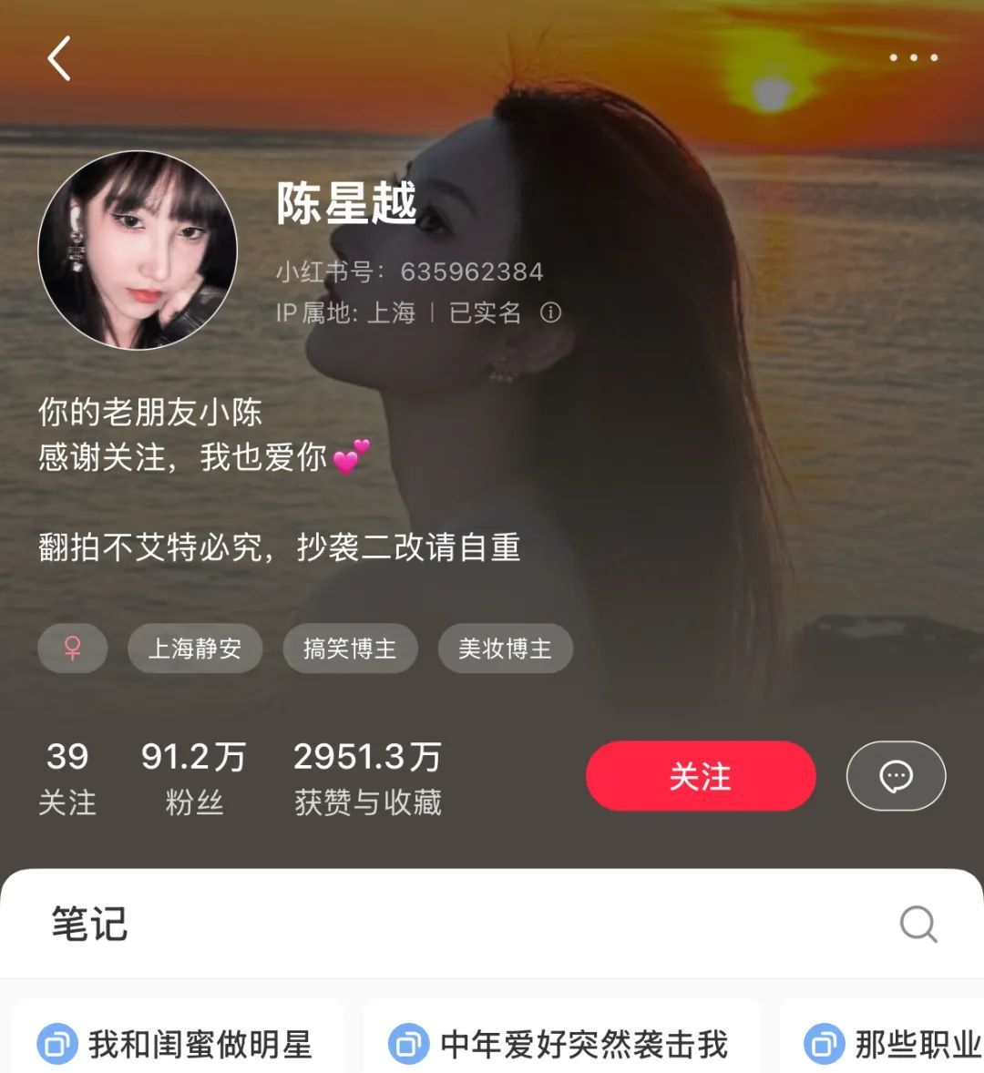 截至发稿,@陈星越 在小红书上总粉丝超过90万,获赞与收藏更是接近3000万。克劳锐指数 显示,过去一年,@陈星越 在小红书累计涨粉超过50万。