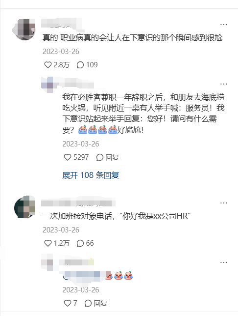 这类拥有强共鸣的剧情,不仅让网友直呼像是在照镜子,更激发了大家的评论欲望:“我以为这是我很小众的习惯。”“一次加班接对象电话:‘你好我是xx公司HR’。”