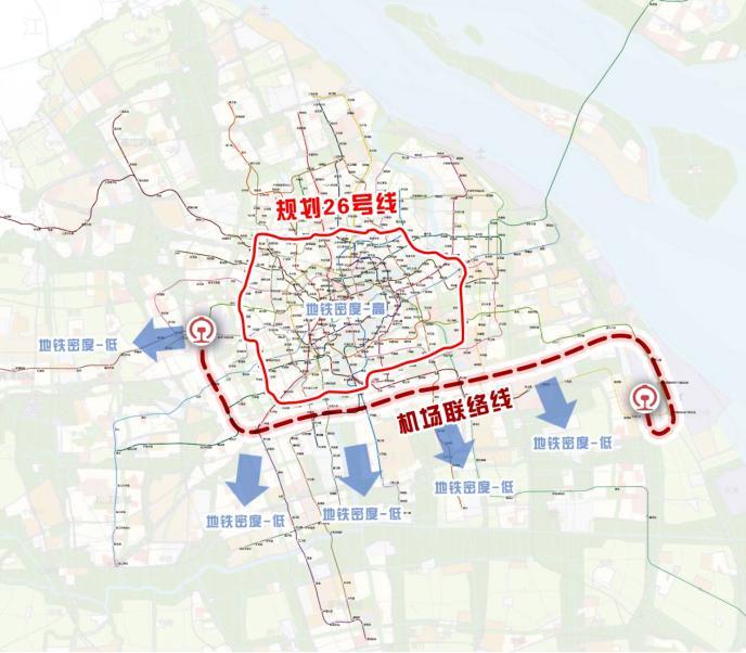 机场联络线的东西横穿,可以提高郊区低密度地铁板块的出行效率,加强高能级板块商务出行能力。