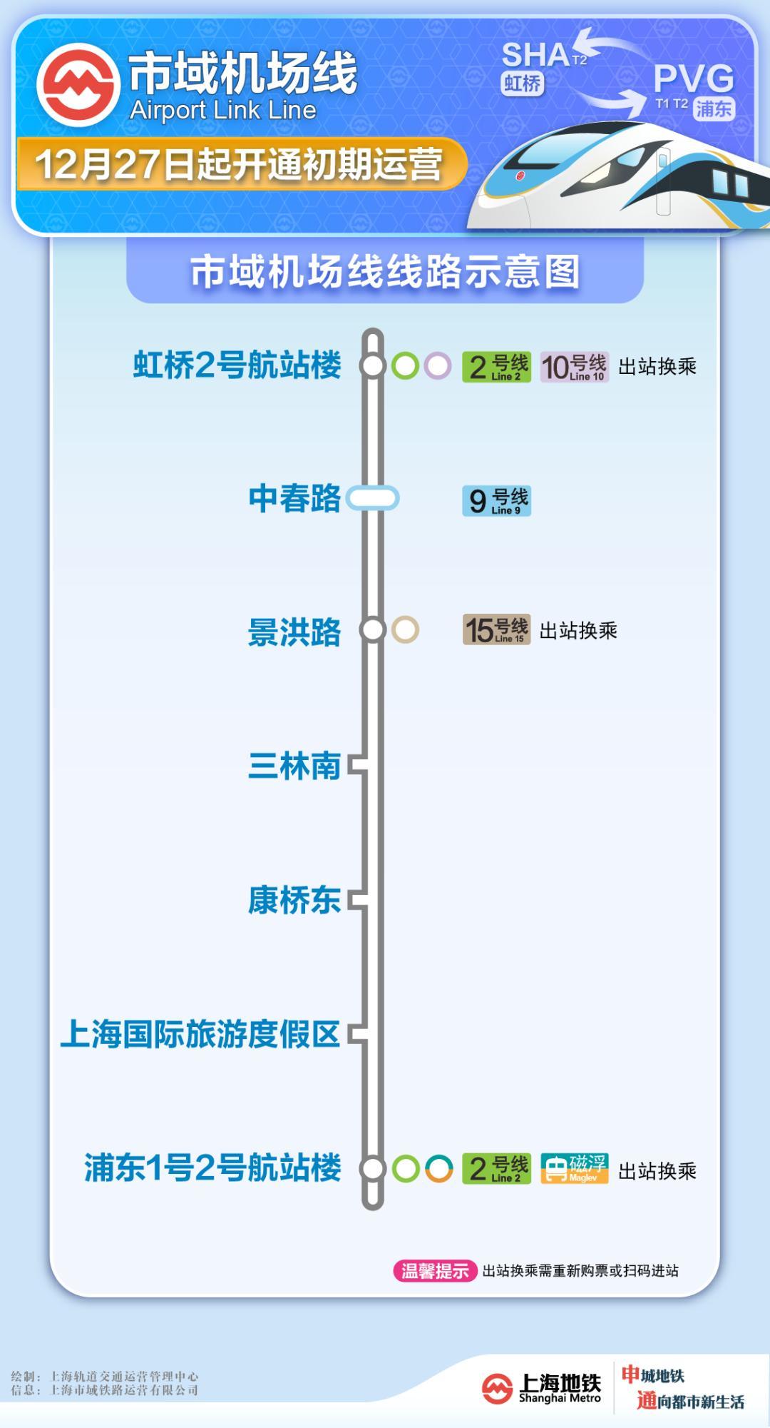 12月27日,上海市域机场线正式开通运营。从此,上海轨道交通全网络运营里程将增至896公里,运营线路共21条,