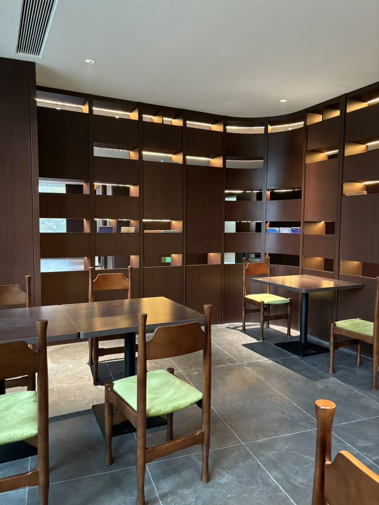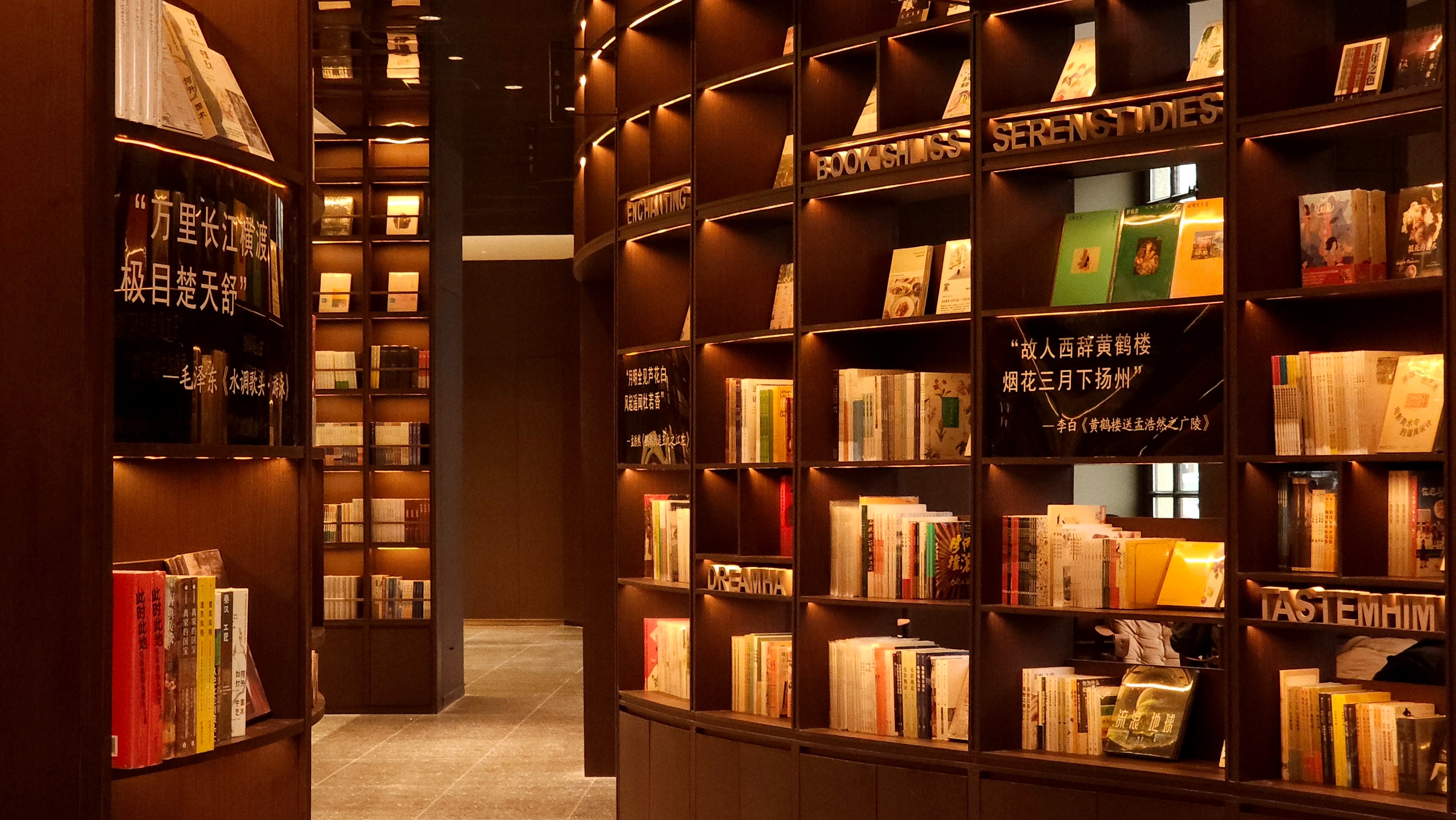目前书局分为三层,面积约两千多平方。一楼是书店,二楼是茶包房和自习区域,三楼是餐饮区域。