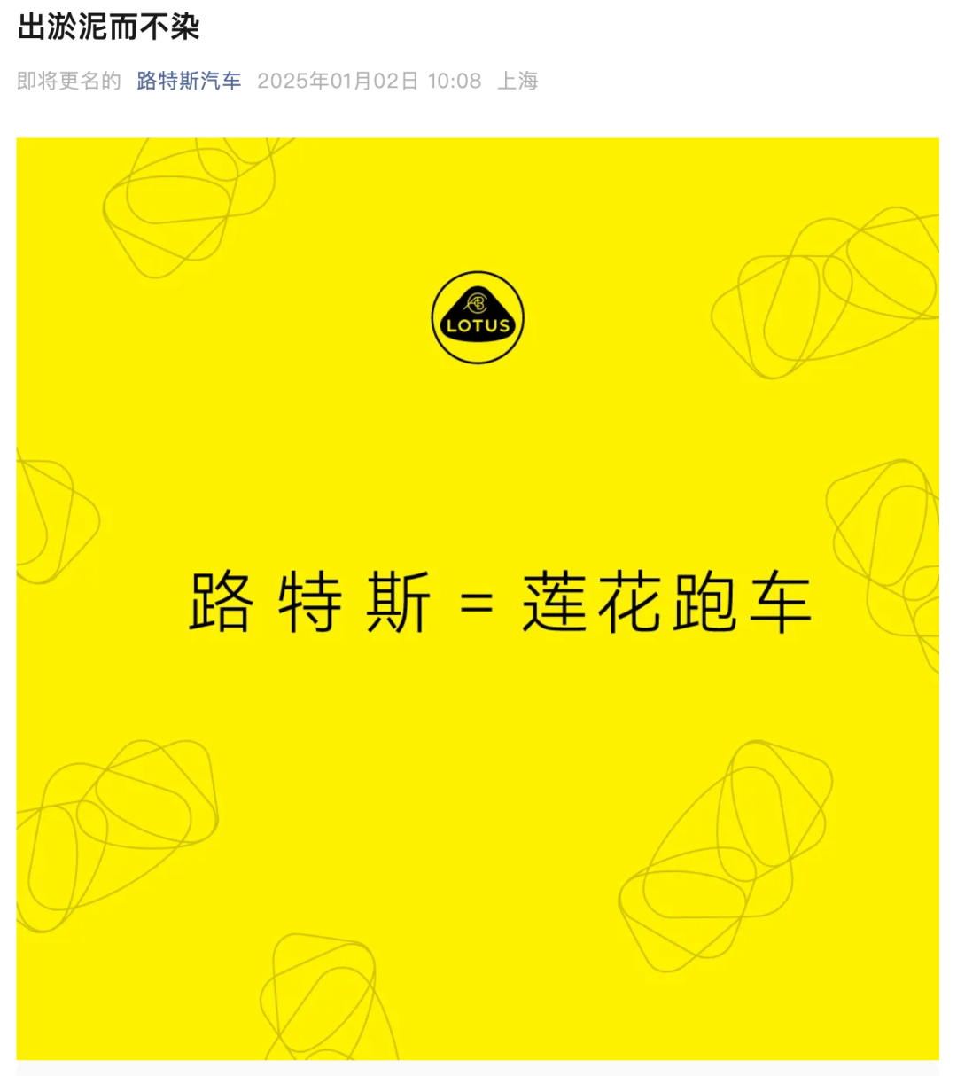 1月2日,路特斯汽车官宣,正式将“路特斯汽车”改为“莲花跑车”。