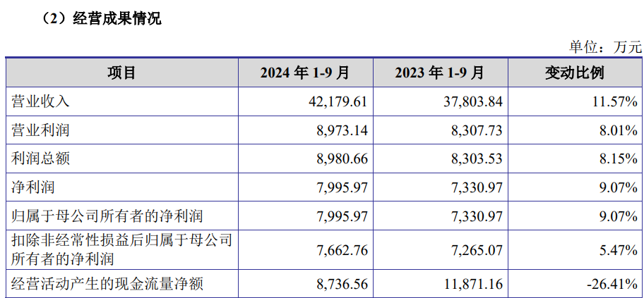 招股书显示,2024年1-9月,江天科技营业收入为4.22亿元,同比增长11.57%;营业利润为8973.14万元,较上年同比增长8.01%。