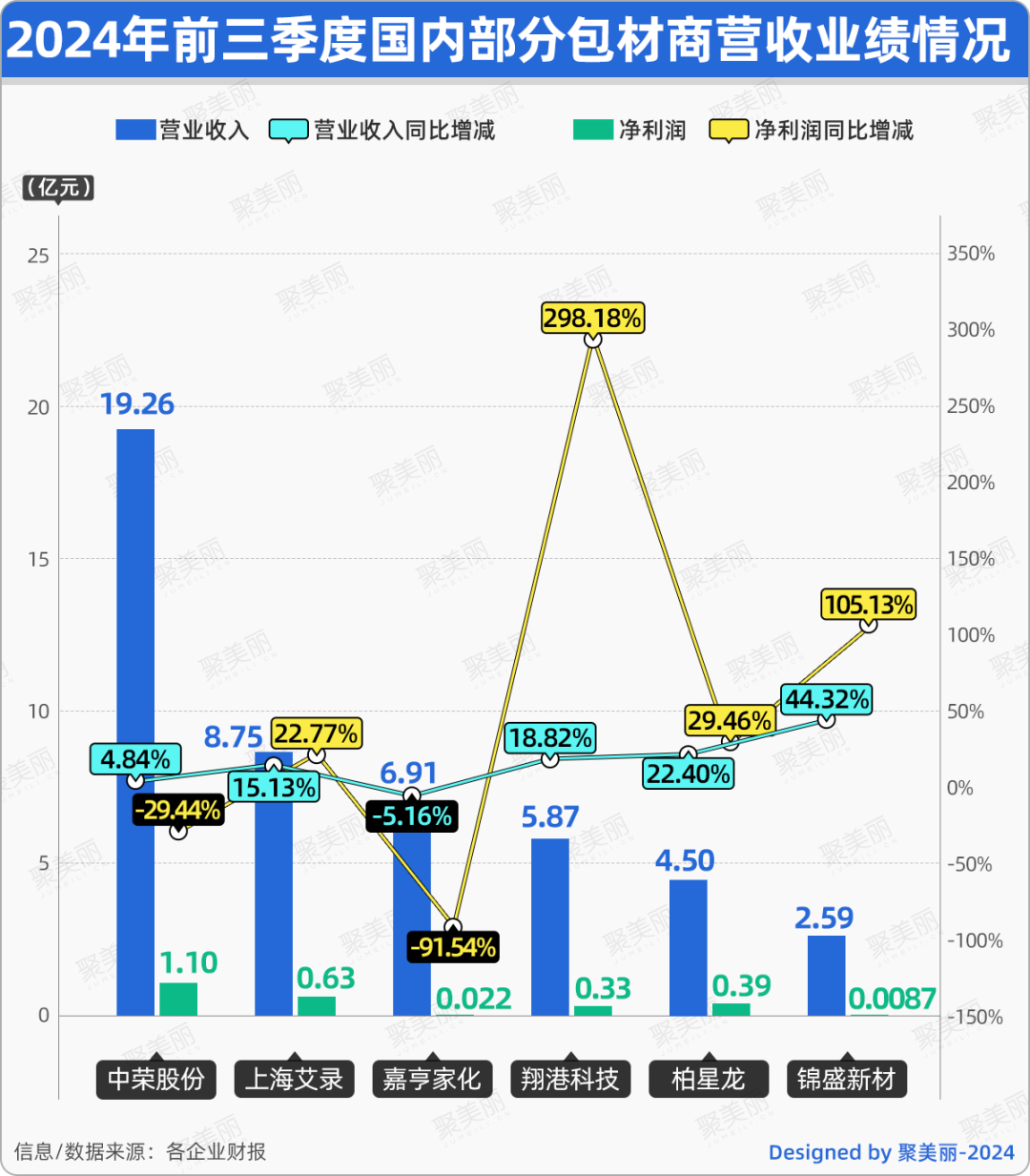 聚美丽曾对6家包材商2024年三季报情况进行过梳理(详见),从梳理结果上看,包材商们的日子呈现着两边倒的局面,一面是暴跌90%,一面是暴涨300%。