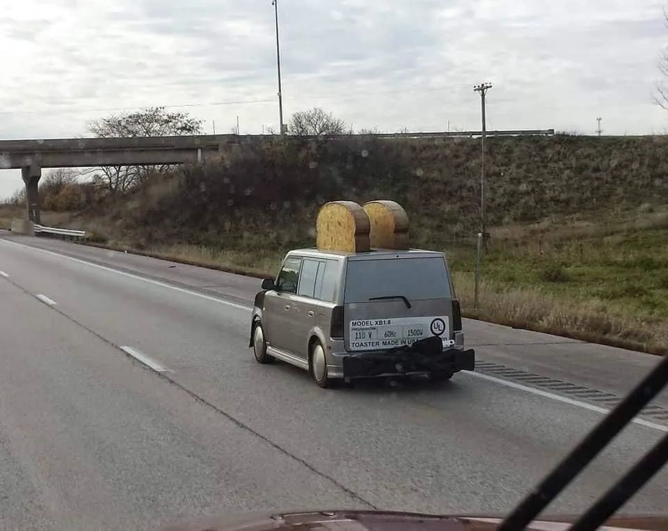 起猛了,看到烤面包机在马路上跑