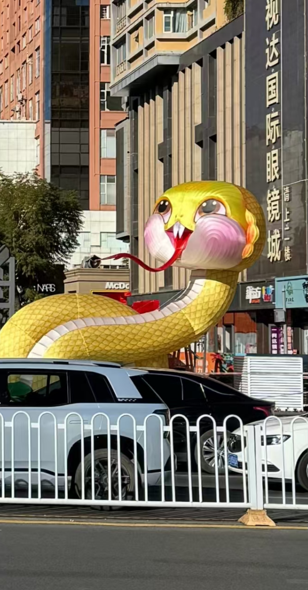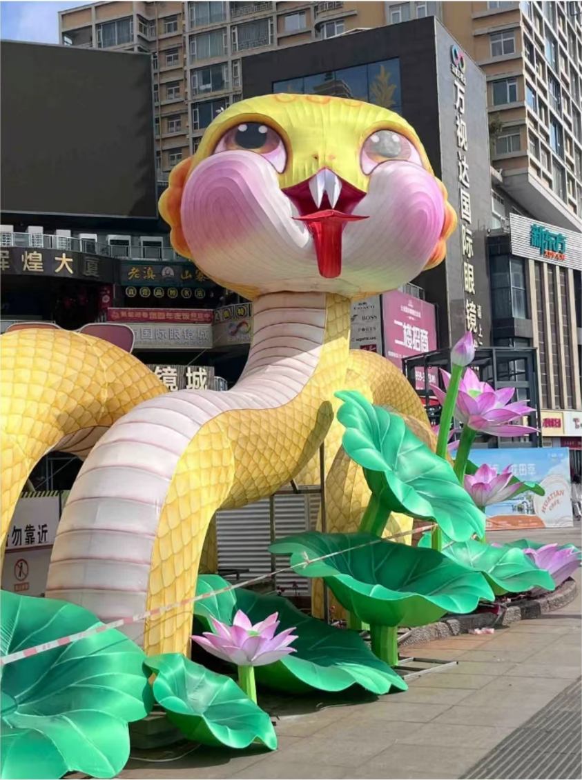 不少网友吐槽说:昆明蛇年花灯造型过于抽象