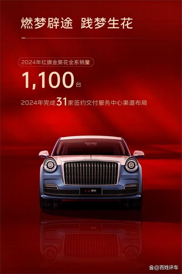 2024年,红旗金葵花全系销量1,100台,完成31家签约交付服务中心渠道布局。
