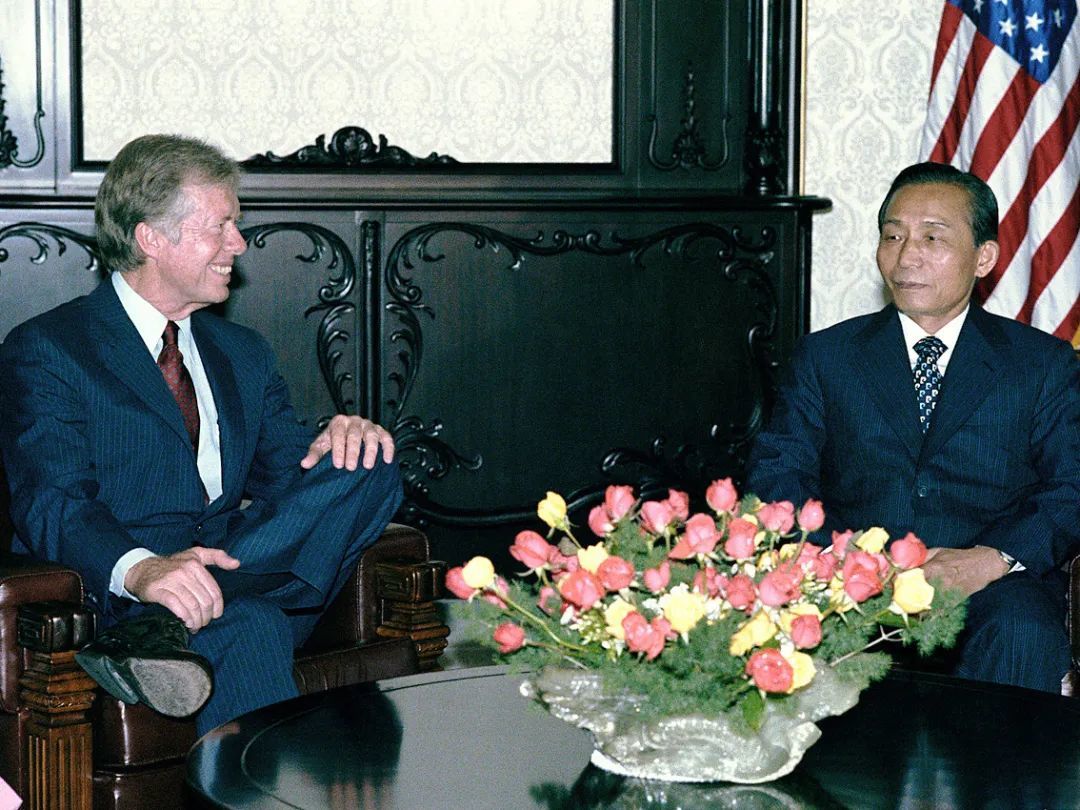 在亚洲,卡特下令从韩国大规模撤军(虽然最终因韩国政府的抗议只撤走了一小部分)。