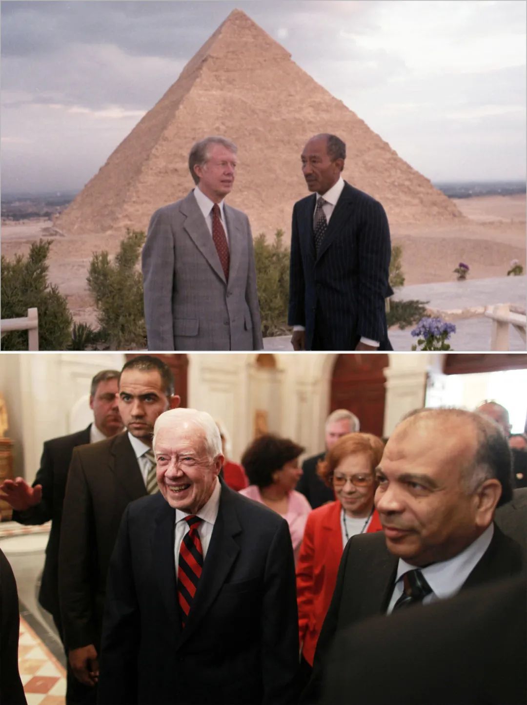 在中东,卡特积极撮合以色列和埃及两个死对头,并邀请以色列总理贝京和埃及总统萨达特来到戴维营,签署了《戴维营协议》,有力地推动了中东地区的和平进程。