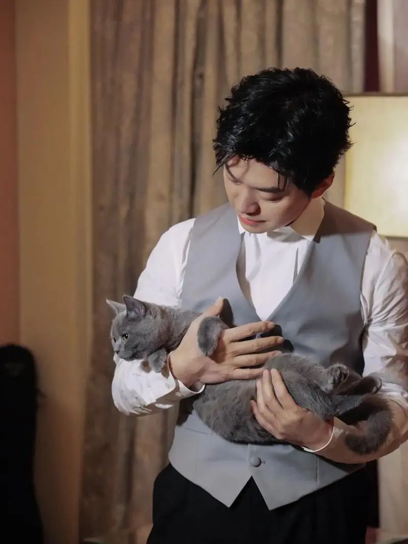 所以你瞅瞅,他说完自己都笑了!还特意挡了一下小猫咪的耳朵~