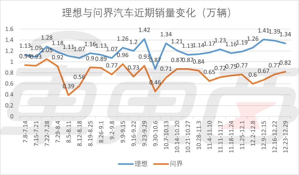 ▲理想与问界汽车近期销量变化