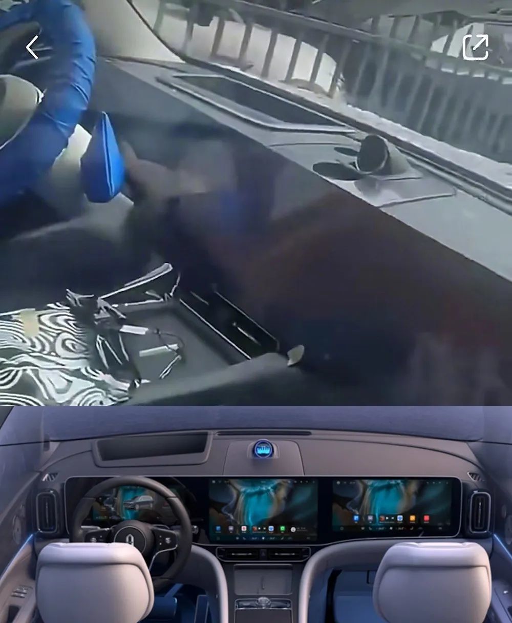 同时,新车HUD安装位也很大,估计也会采用和问界M9同款的HUD产品,但尺寸可能有所不同。