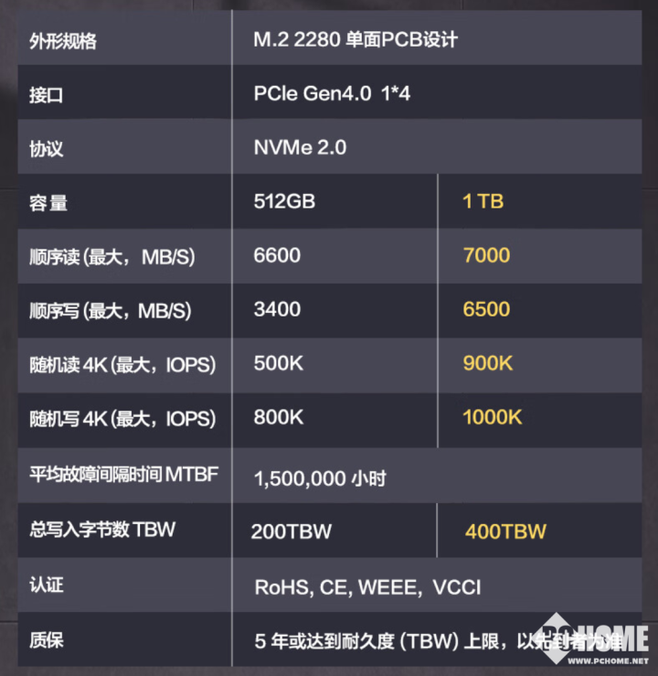 坤灵eKitStor Xtreme 200E为M.2 2280外形规格,单面PCB设计,采用了PCIe 4.0 x4接口,支持NVMe 2.0协议。该款固态硬盘严筛苛选高品质颗粒,提供了7000 MB/s的顺序读取速度,以及6500 MB/s的顺序写入速度,4K随机读取为900K IOPS,4K随机写入为1000K IOPS,对应为400TBW,平均故障间隔时间MTBF为1,500,000小时。