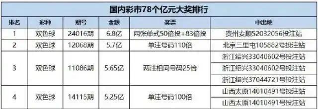 随着中奖者揭晓,国内彩市历年亿元巨奖排行榜也再次刷新,并且5.31亿元将高居第四位。