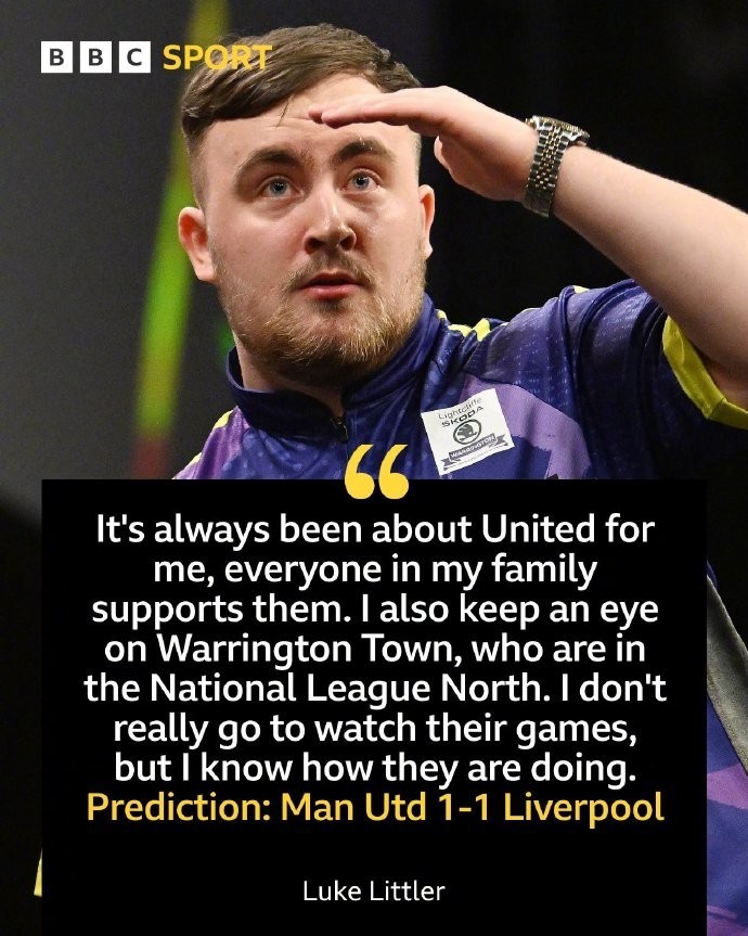 另外,除了飞镖运动外,利特尔还是一名忠实曼联球迷。此前曾多次造访曼联俱乐部并现场观赛。在社交媒体上,利特尔也是经常对曼联话题发表个人意见。