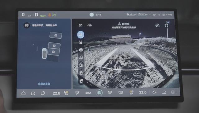 通过测试现场的图片,我们可以看到,被雪覆盖后地上的车位线非常不清晰。当深蓝L07开到车位附近时,通过车内屏幕可以看到,它是精准地识别出了被大雪覆盖的车位。车内驾驶者通过点击屏幕中的车位,车辆自动按照手指点击的车位停好,并没有受到雪地的影响,而且整个操作非常简单。深蓝L07在雪地里识别车位的能力显然没有什么问题。
