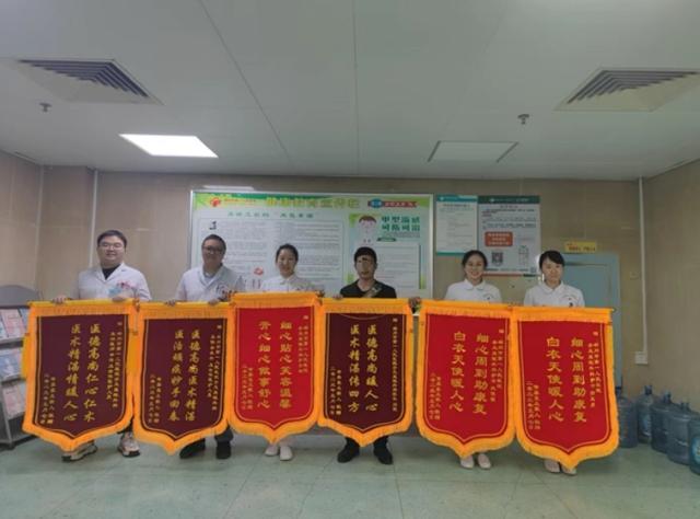 (手足显微外科团队同时收到家属送的六面锦旗)
